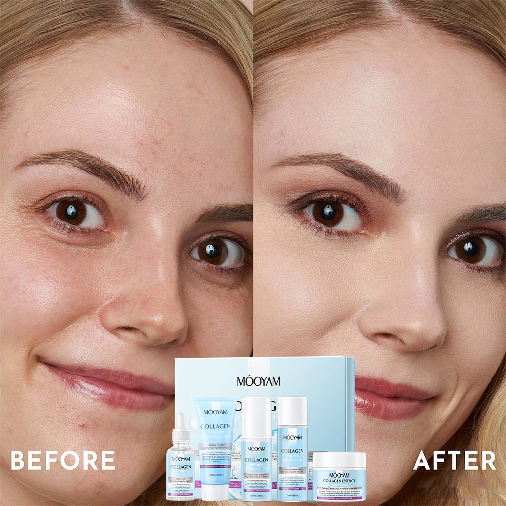 Coffret MOOYAM au Collagène : 5 soins anti-âge et hydratants pour une peau ferme, lisse et éclatante de jeunesse.